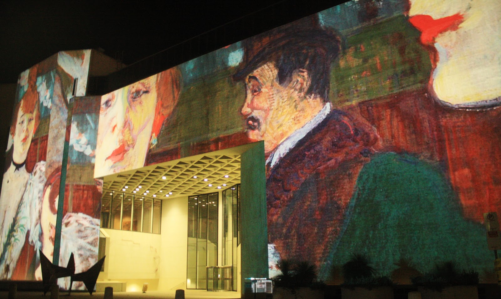 The National Gallery of Australia is currently showing an exhibition of works by Toulouse-Lautrec. During this week, many of those works are projected onto the front of the building and they look equally remarkable inside and out. They overwhelm in their entirety and stun in their detail.