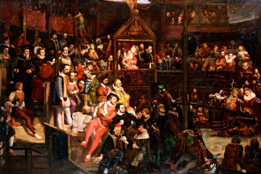 | 'Queen Elizabeth viewing the performance of The Merry Wives of Windsor, at the Globe in Merrie England' by David Scott |