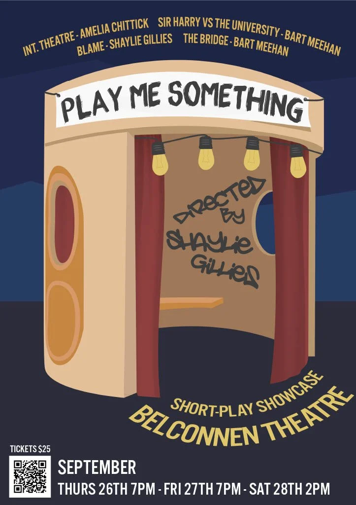 - Play Me Something - Green Oak Theatre, Belconnen Community Centre: Four short plays with no apparent direction (although Shaylie Gillies is credited) or cohesion. INT.THEATRE by Amelia Chittick is a play about actors preparing to do a play, while Sir Harry vs, The University by Bart Meehan is a well-written comedy about a disgraced actor who applies for a job at a university only to sue for discrimination when they don't get the role. I was surprised to see that Blame by Shaylie Gillies is about the effect on the community of the Aberfan disaster, until I was told that the event featured heavily in the TV hit show, The Crown, which would explain why people in Australia suddenly know about it. The last play on the bill is The Bridge, also by Bart Meehan, which deals with family loss, grief, difficult relationships and distorted memories. Due to the changing sets required, these were necessarily perfunctory, although the use of sheets in Blame is interesting, and the Greek chorus effect adds a much-needed diversion. I also admire the decision not to make the cast attempt Welsh accents. Actors performing in different pieces are at best competent and have clear favourites, interpreting these and mumbling inaudibly through others. For example Chazelle Cromhot plays Professor Turner with solid gestures in Sir Harry, obviously relishing the role, while leaving unnecessary pauses and being almost completely uncommitted to the role of Daughter in The Bridge. While I applaud the motivation to bring short plays to the stage in search of a wider audience, the performance feels under-rehearsed and could be considered a drama exercise, but not a finished product. The poster is a highlight.