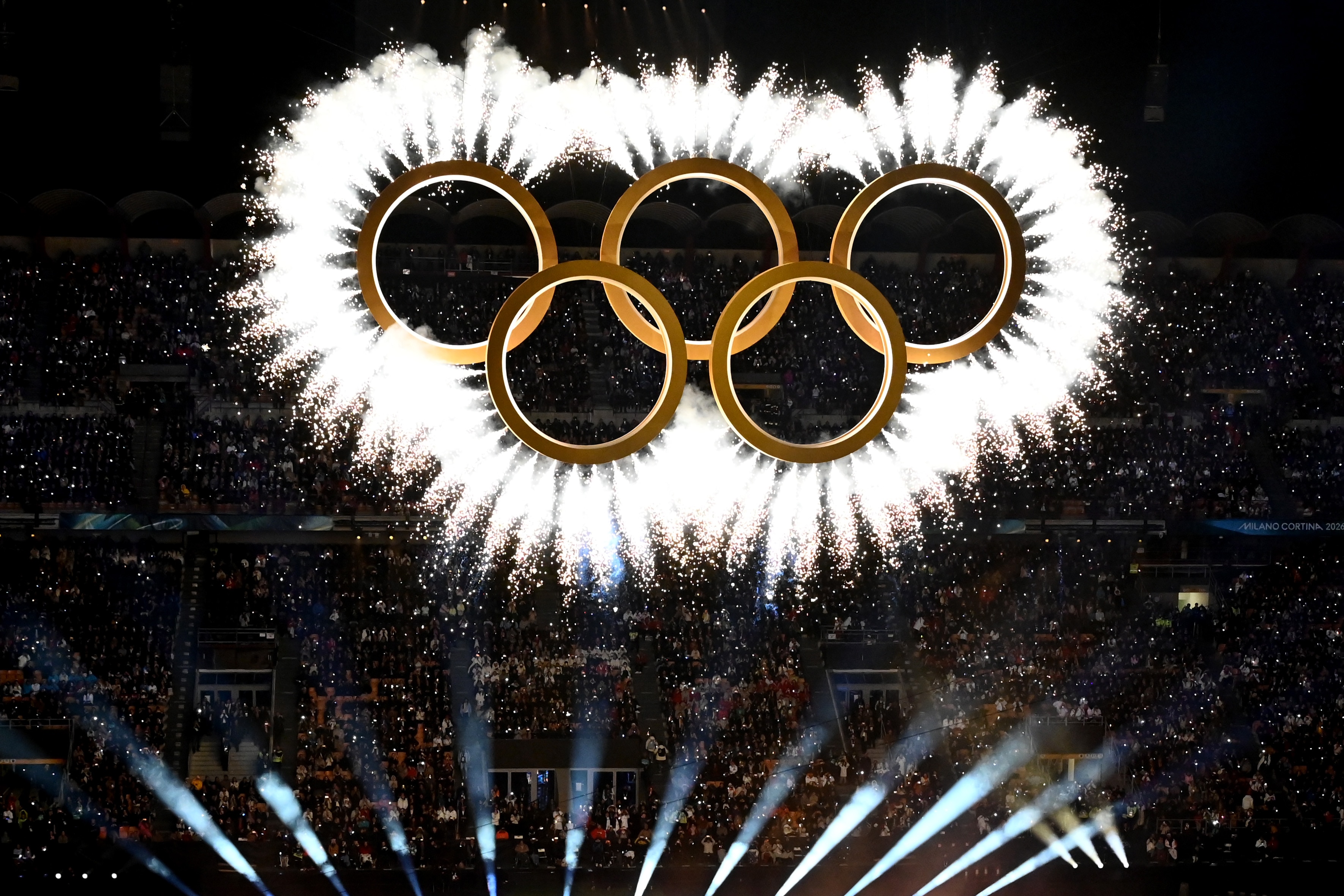 Because the Games are spread out across Italy, certain elements of the opening ceremony (including the raising of the flag and the parade of athletes) are being held over four venues: Milan (ice-hockey; figure skating; speed-skating) Cortina in the heart of the Dolomites (men's alpine skiing, curling and sliing events), Livigno in the Italian Alps (snowboarding; freestyle skiing; men's alpine skiing; ski mountaineering) and Predazzo in Trento (ski-jumping; Nordic combined; cross-country skiing). Meanwhile, back in Milan, Laura Pausini performs a stirring version of the national anthem.